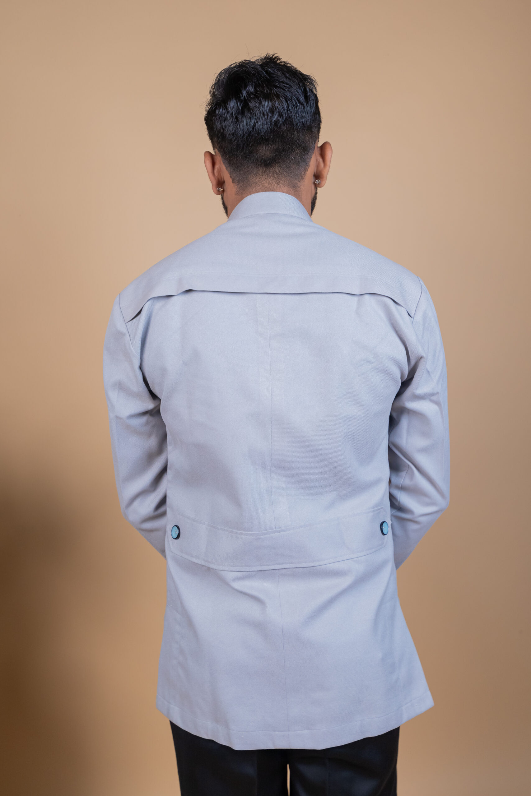 Subtle, elegant, and effortlessly royal — this Jodhpuri Hunting Shirt in Light Grey is made for men who prefer timeless style over loud fashion.
