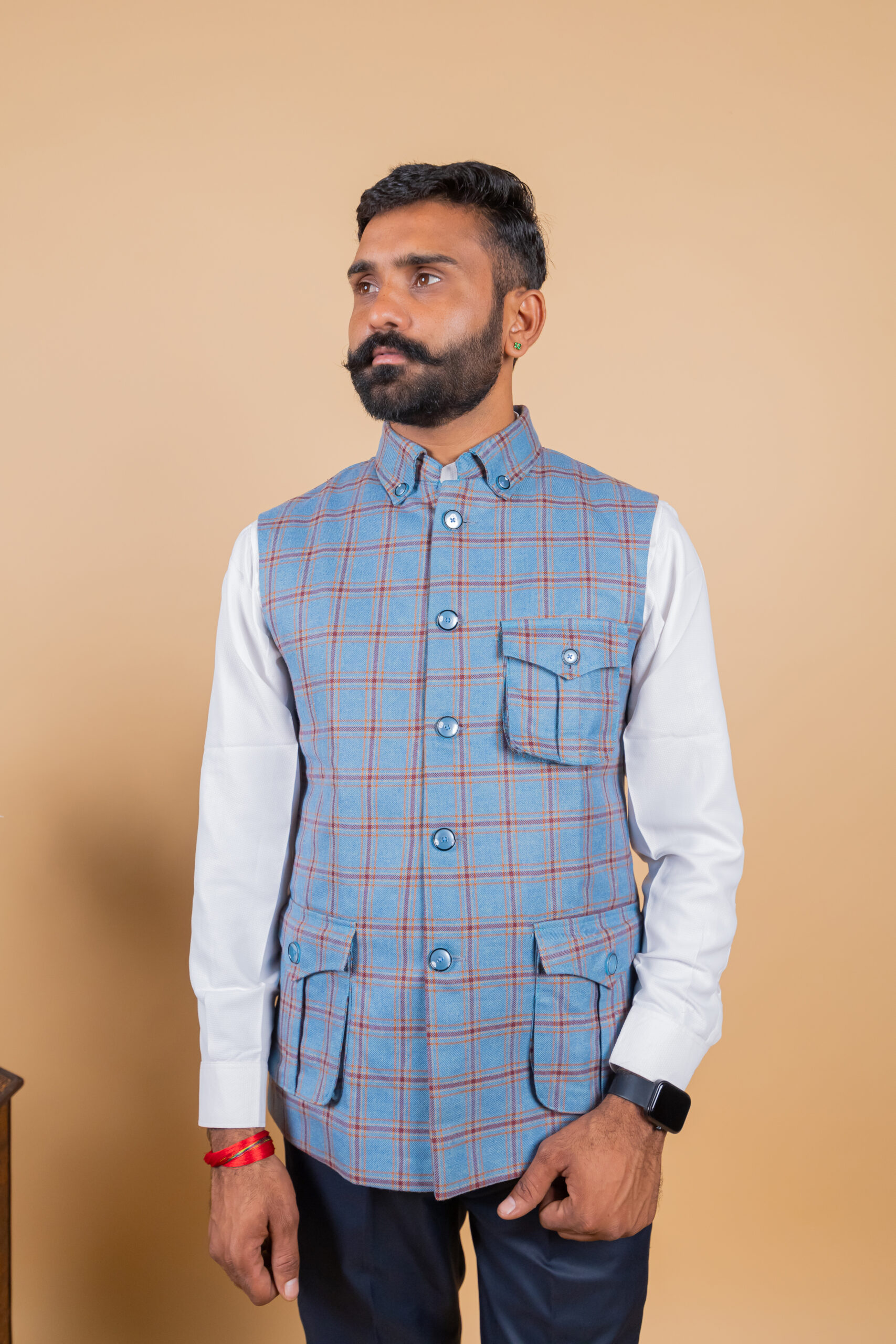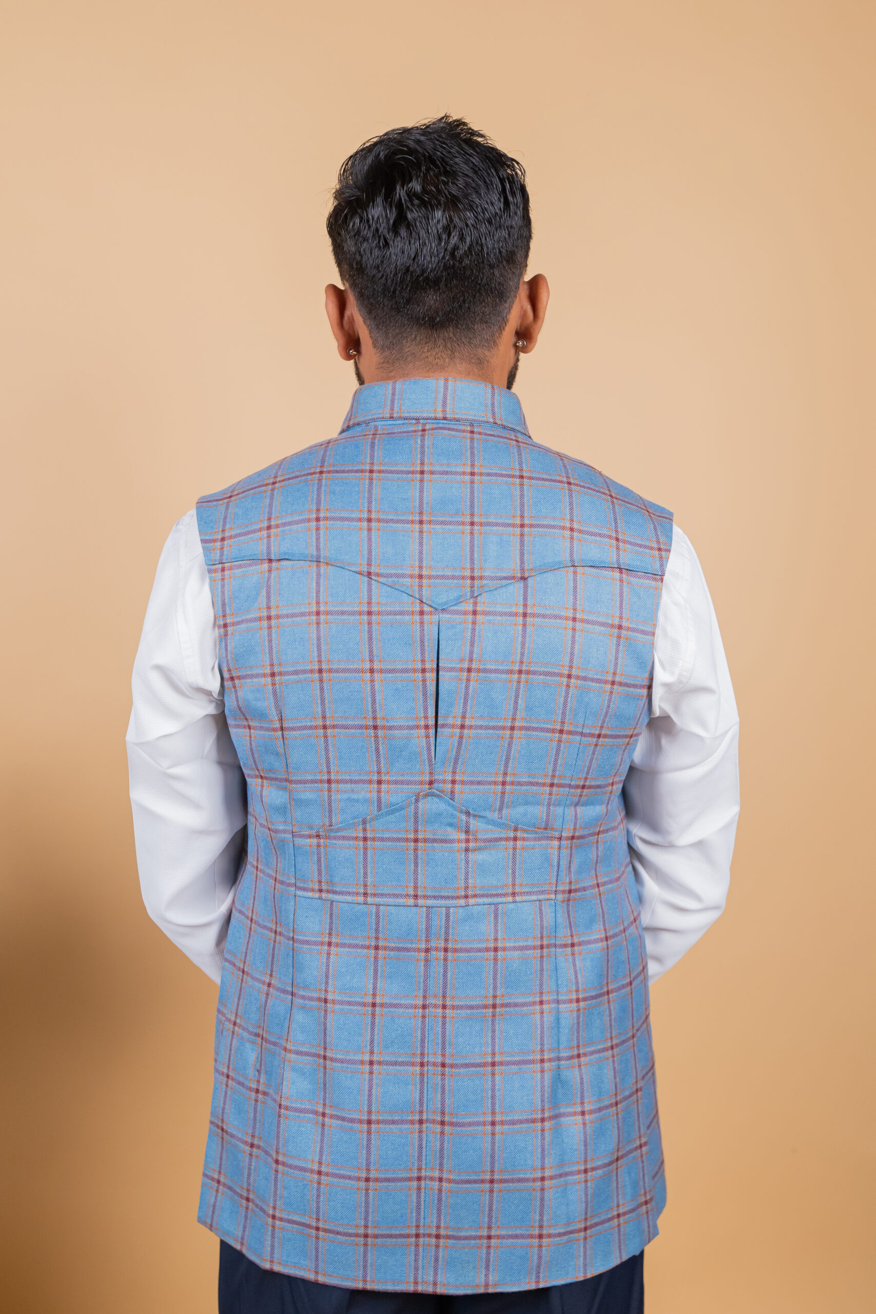 Be the first to review “Men’s Blue Check Collared Rajputana Jacket”